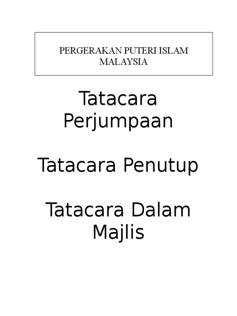 Pergerakan puteri islam malaysia tatacara perjumpaan 1 (disusun semula oleh: Sedia baris, baris sedia senang diri senang diri luruskan . Seramai.orang sedia mendengar arahan puan.